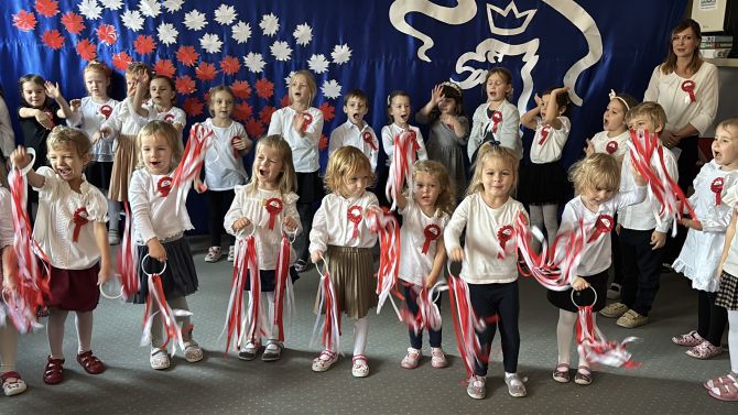 W piątek 7 listopada w naszym przedszkolu odbyły się wyjątkowe obchody Narodowego Święta Niepodległości. Dzieci z wielkim zaangażowaniem uczciły ten ważny dla wszystkich Polaków dzień.